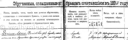 | + | [[bild:HeiratenRoz1893kl.jpg|<center><b>Heirat 1893 Rozyszcze:</b> LANGE, Daniel & BREIER, Anna Rosalia</center>|300px|framed|right]] | ||