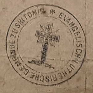 | Beschreibung | Stempel ev.-luth. Kirche in Shitomir in deutscher Sprache auf einer Urkunde von 1881. | ||