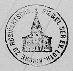 | Beschreibung | Deutscher Stempel der ev.-luth. Kirche in Roschischtsche um 1883. |